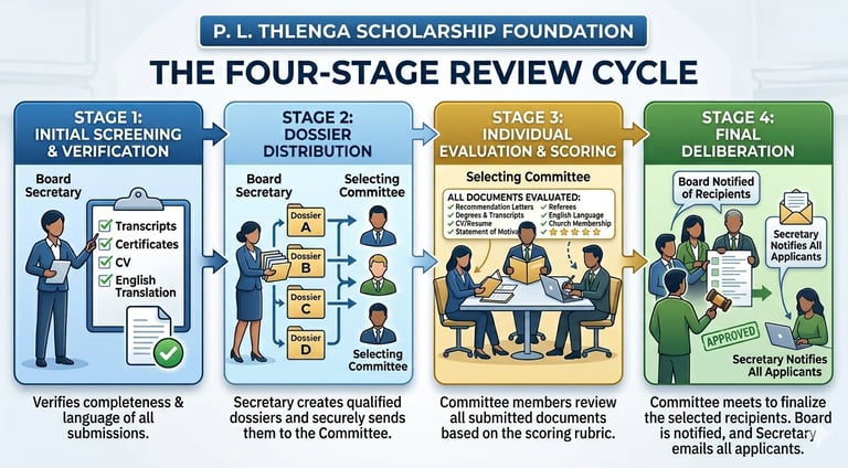 Equitable Evaluation: Every document, from your baptismal certificate to your motivation statement, is weighed according to a standardized rubric based on merit, mission-fit, and financial need.